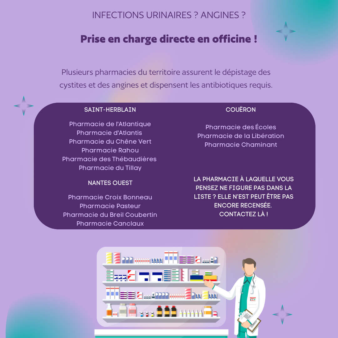ℹ️ De récentes évolutions réglementaires ont permis la prise en charge des angines et des infections urinaires en officine, sans condition de recours à un protocole de coopération.